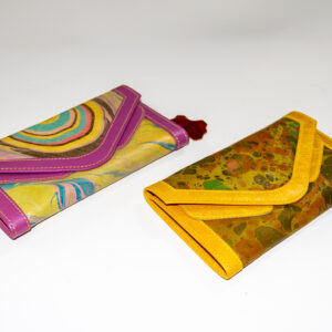 Didar Art atölyesinde tamamen el yapımı üretilen bu portföy cüzdan, hakiki deri üzerine uygulanan ebru desenleriyle “deride sanat” anlayışının modern bir yorumudur. Mor-lila ve kehribar-sarı tonlu iki farklı renk seçeneği, zarif kontrast dikişlerle vurgulanır ve ürüne özgün bir karakter katar. Kompakt boyutu sayesinde elde, çantada ya da akşam davetlerinde rahatça taşınır; dayanıklı yapısı uzun süreli kalite sunar.