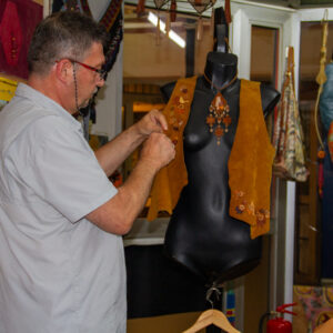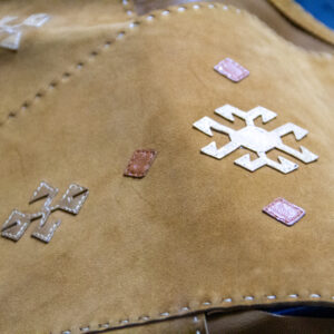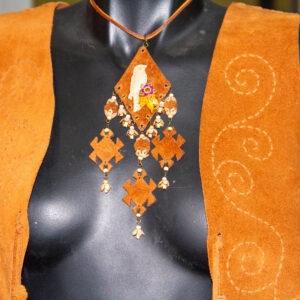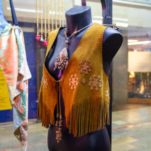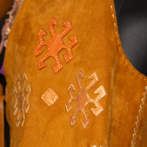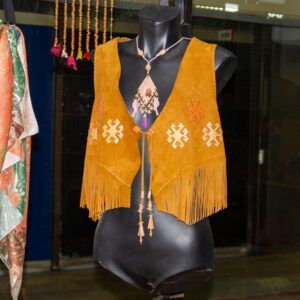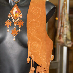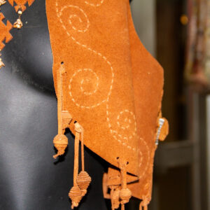 Didar Art atölyesinde tamamen el yapımı üretilen bu yelek, sıcak hardal tonlarında hakiki süet deri kullanılarak, ince el işçiliği ile şekillendirilmiştir. Ön panellerdeki etnik-geometrik kesikler ve alt kısmı çevreleyen uzun püsküller, bohem/Western stilini çağrıştırırken yüksek kalite dikişler dayanıklılığı garanti eder. Standart beden seçenekleri yanında ölçüye göre kişiselleştirme mümkündür; festival, sahne, showroom ya da günlük stilinize karakter katar, kısacası “deride sanat”ın giyilebilir hali.