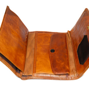 Didar Art atölyesinde elde dikilen bu cüzdan, tütün rengi doğal derinin sıcak tonu ile yeniden hayat verilmiş kilim parçalarını bir araya getirir. Dıştaki kilim panellerin deseni her üründe farklı yerleştiği için aynı modelin birebir eşi yoktur; böylece elinizde gerçekten “tek” bir parça taşımış olursunuz.