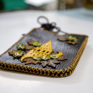 Didar Art atölyesinde ince el işçiliği ile üretilen bu boyun cüzdanı, siyah hakiki deri üzerine yerleştirilen kule ve çiçek kabartmalarıyla “deride sanat” anlayışını yansıtır. Kenarlardaki çift renkli elde örme dikişler ve ayarlanabilir kordon, ürüne hem dayanıklılık hem de pratik kullanım kazandırır. Kart, kimlik, mini not defteri veya telefon için ideal kompakt ölçüler; günlük hayatta yüksek kalite ve işlevselliği bir arada sunar.