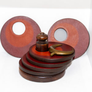 Klasik ve otantik unsurları aynı tasarımda buluşturan bu bardak altlığı seti, atölyemizde kösele şekillendirilerek hazırlandı. Her bir altlığın üst yüzeyi elde kesilip tutkallanan doğal dana derisiyle kaplandı; zımpara ve balmumu cilası sayesinde hem sıcak‑soğuk bardaklara dayanıklı hem de yüzey çizilmelerine karşı uzun ömürlüdür.
