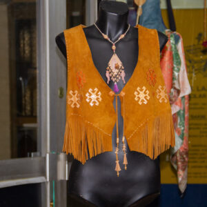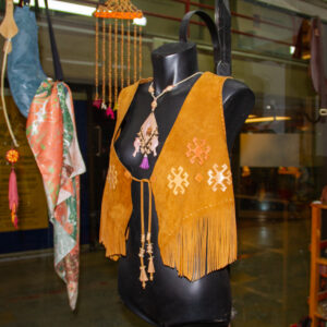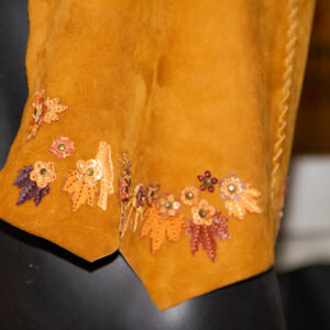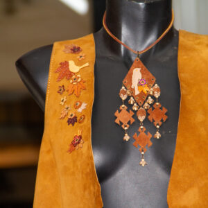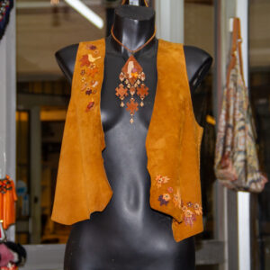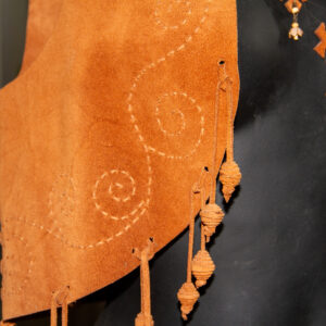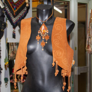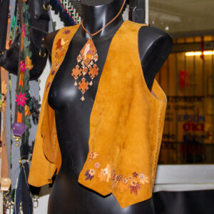 Didar Art atölyesinde tamamen el yapımı üretilen bu yelek, sıcak hardal tonlarında hakiki süet deri kullanılarak, ince el işçiliği ile şekillendirilmiştir. Ön panellerdeki etnik-geometrik kesikler ve alt kısmı çevreleyen uzun püsküller, bohem/Western stilini çağrıştırırken yüksek kalite dikişler dayanıklılığı garanti eder. Standart beden seçenekleri yanında ölçüye göre kişiselleştirme mümkündür; festival, sahne, showroom ya da günlük stilinize karakter katar, kısacası “deride sanat”ın giyilebilir hali.