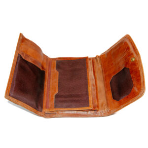 Didar Art atölyesinde elde dikilen bu cüzdan, tütün rengi doğal derinin sıcak tonu ile yeniden hayat verilmiş kilim parçalarını bir araya getirir. Dıştaki kilim panellerin deseni her üründe farklı yerleştiği için aynı modelin birebir eşi yoktur; böylece elinizde gerçekten “tek” bir parça taşımış olursunuz.