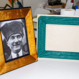 Didar Art atölyesinde tamamen el yapımı hazırlanan bu fotoğraf çerçevesi, geleneksel kutnu kumaşının parlak dokusunu modern bir formda buluşturur. Kenarlardaki metal köşe aksesuarları ve siyah taban (opsiyonel deri kaplama) ürüne dayanıklılık ve premium kalite katarken, masaüstü ya da raf kullanımına uygundur. “Deride sanat” yaklaşımını tekstilde de sürdüren Didar Art, ince el işçiliği ile her detayda fark yaratır.