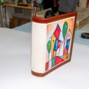 Didar Art atölyesinde titiz el işçiliği ile hazırlanan bu klasör, karamel tonlarında hakiki deri gövdesi ve ön yüzündeki renkli el boyaması tuval paneliyle “deride sanat” yaklaşımını ofisinize taşır. Standart 4 halkalı metal mekanizma; toplantı notları, menü sayfaları, teklif dosyaları veya ajanda yapraklarını düzenli tutmanızı sağlar. Pürüzsüz yüzey, sağlam dikişler ve kaliteli malzeme kombinasyonu uzun ömürlü kalite sunar.